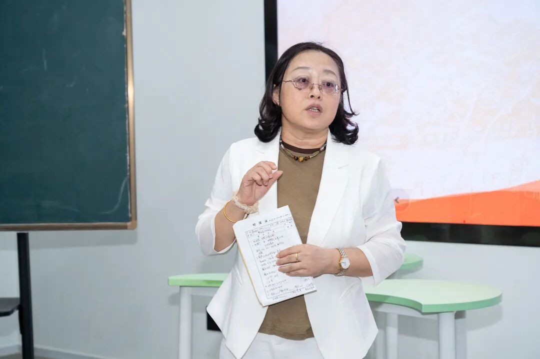 在专家引领环节,杨建英老师对三节公开课展开了专业且深入的点评。她指出,三位授课教师均紧扣新课标核心要求,成功实现了语文教学从“知识本位”向 “素养本位”的转型。课堂中,教师既聚焦语言建构与运用的基础目标,通过任务驱动引导学生开展自主探究;又依托情境表演等活动,有效落实了学生思维能力提升的进阶目标,形成了完整的素养培养链条。杨老师进一步强调,教师需善用问题链设计激活学生深度思维,同时要注重语言建构与审美创造的有机融合,让语文学习兼具工具性与人文性。她结合具体课例,从多个方面提出改进策略,为参会教师指明了教学优化的方向。