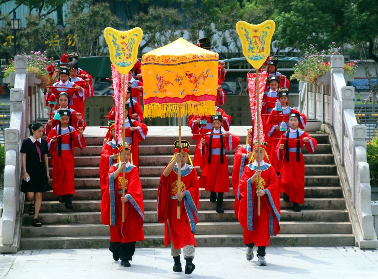 古人称入学为“入泮”。孩子们踏上泮桥行至桥顶,与班主任一起将金鱼投入泮池,象征着“鱼跃龙门”,寓意着学有所成、前程似锦。