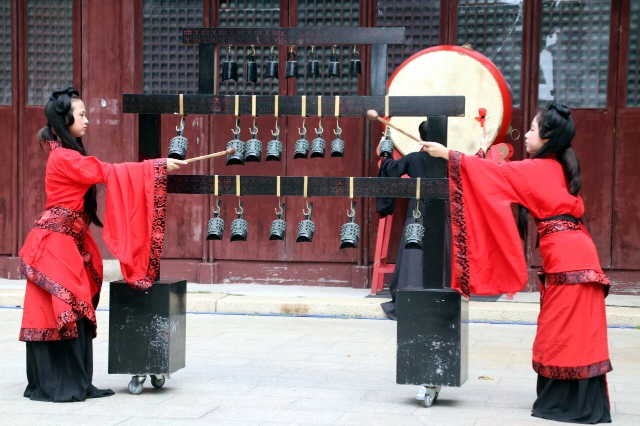 以钟发声,以磬收韵。仪式在“金声玉振”的礼乐声中拉开序幕,寓意儒家思想声名远扬。